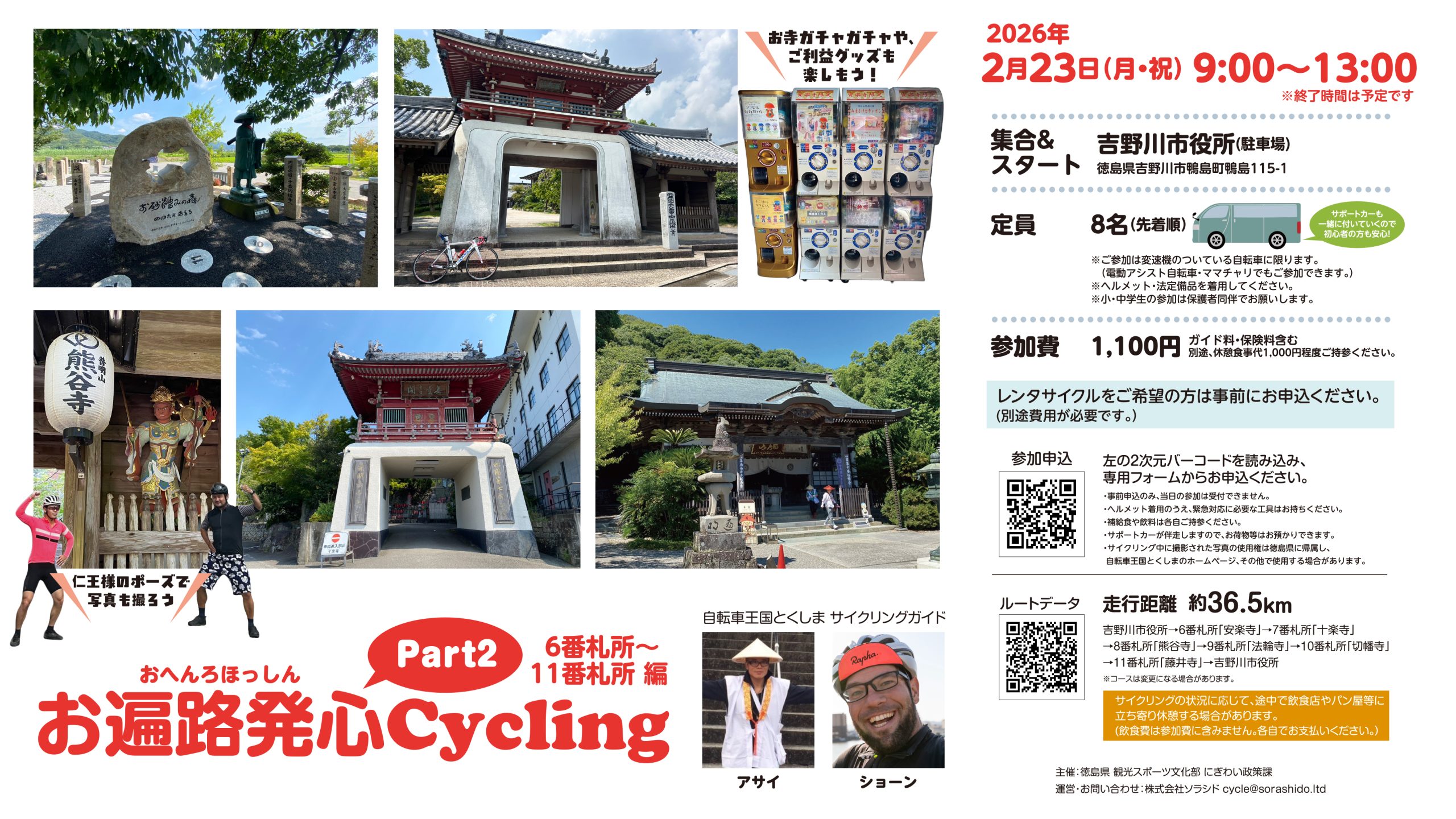 - 2026年01月28日 イベント募集中 【2/23(月)イベント開催】お遍路発心Cycling(Part2)